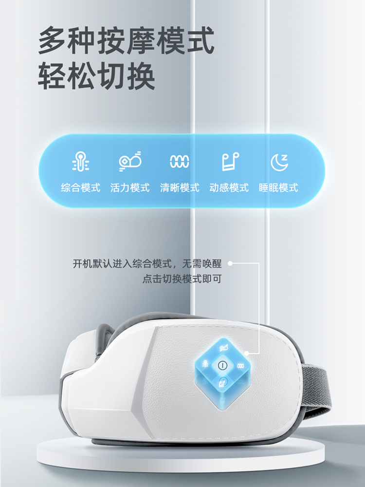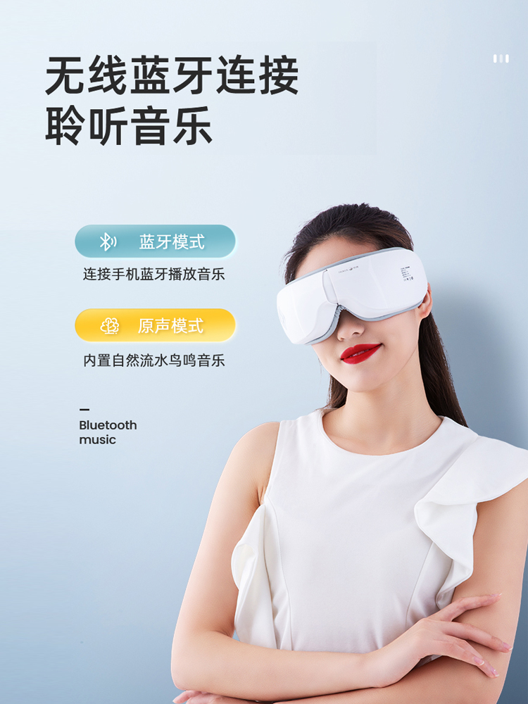 2.多頻震動按摩,規律刺激眼周,不同頻率與節奏的柔和震動,放松眼部,能讓我們再現明亮雙眸,舒適一整天。多種按摩模式,輕松切換。還可以連接手機藍牙播放音樂。如果不連接手機的話,可以使用它的原生模式,內置自然流水鳥鳴的音樂聲,讓人心情舒暢~